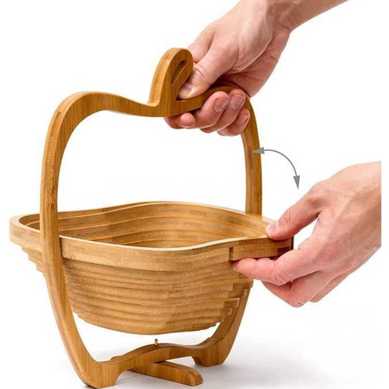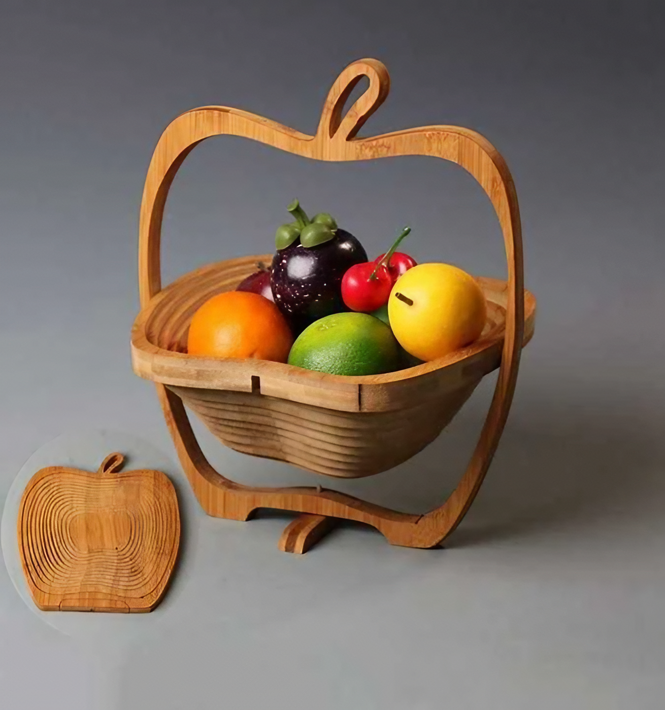 This eco-friendly Bamboo Apple Collapsible Basket is a multifunctional kitchen accessory. It serves as a stylish fruit and vegetable bowl while doubling as a decorative centerpiece. The collapsible design allows for easy storage, and the natural bamboo material adds a touch of elegance to your dining or kitchen space.