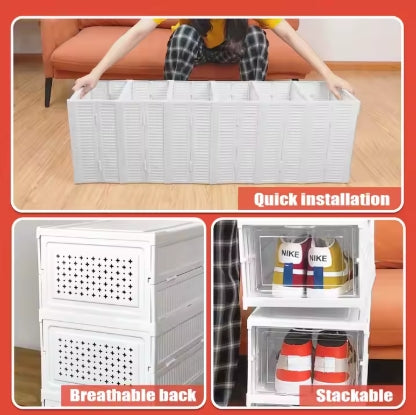 Keep your shoes neat, clean, and easy to find with the Folding Shoe Storage Box. Designed with a classic rectangular shape and a multifunctional folding design, this shoe organizer is perfect for maximizing closet or entryway space while keeping your footwear dust-free.