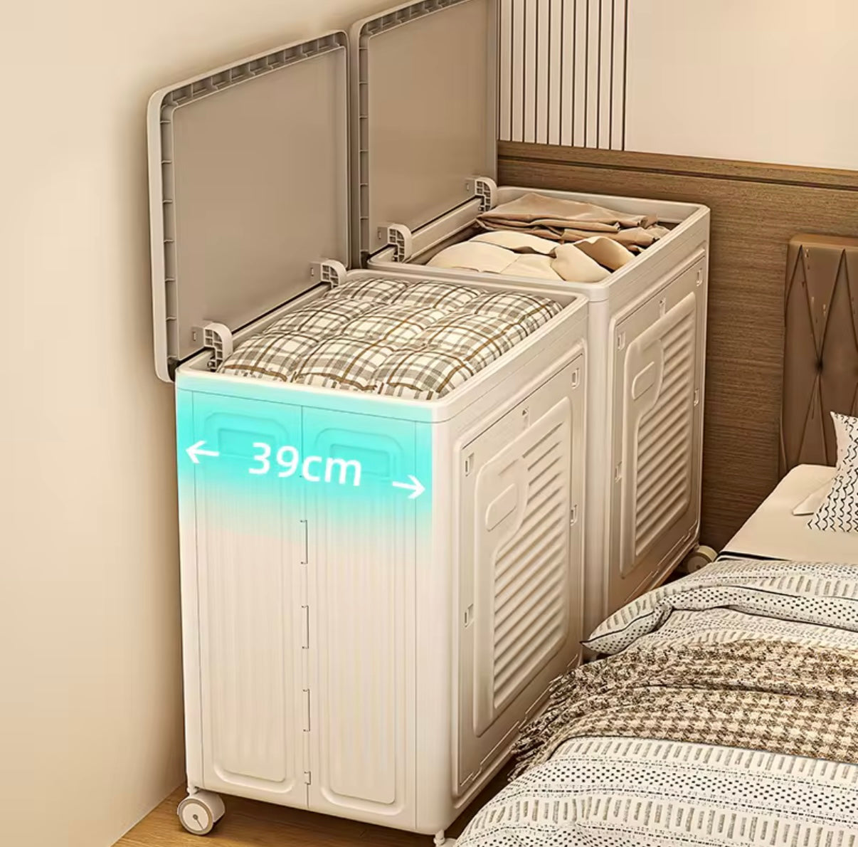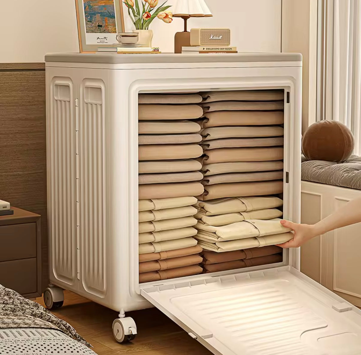 Dimensions: 67.5cm (H) x 57cm (L) x 39.1cm (W) – ideal for bulky blankets, winter coats, and more.