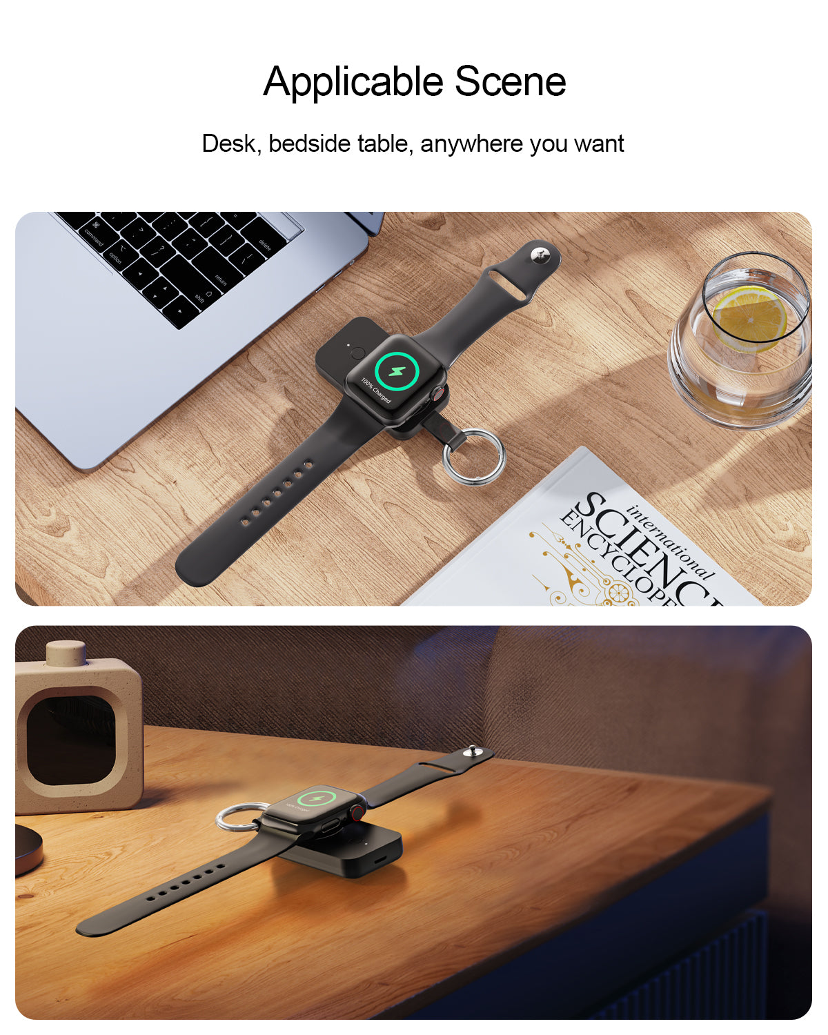 Charge your Apple Watch anytime, anywhere. This ultra-compact magnetic charger doubles as a keychain power bank, making it perfect for travel, work, and daily carry. Lightweight, slim, and powerful just snap it on and go.