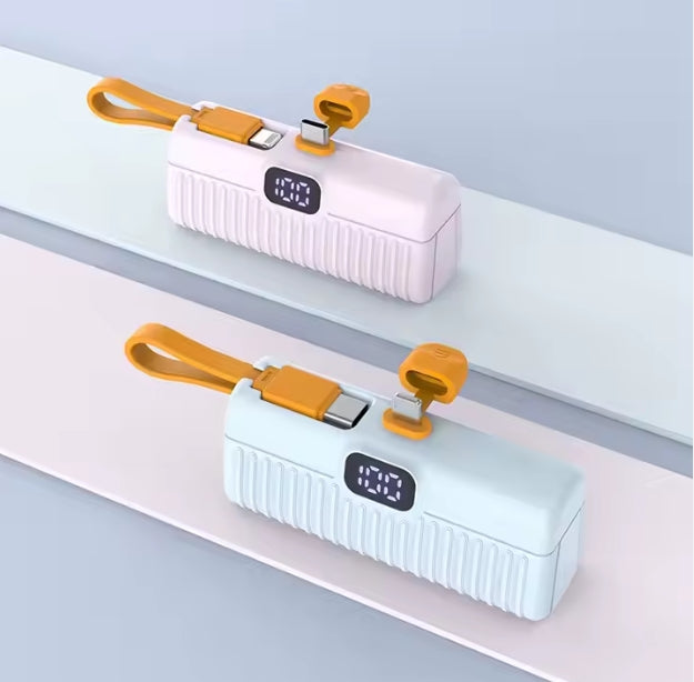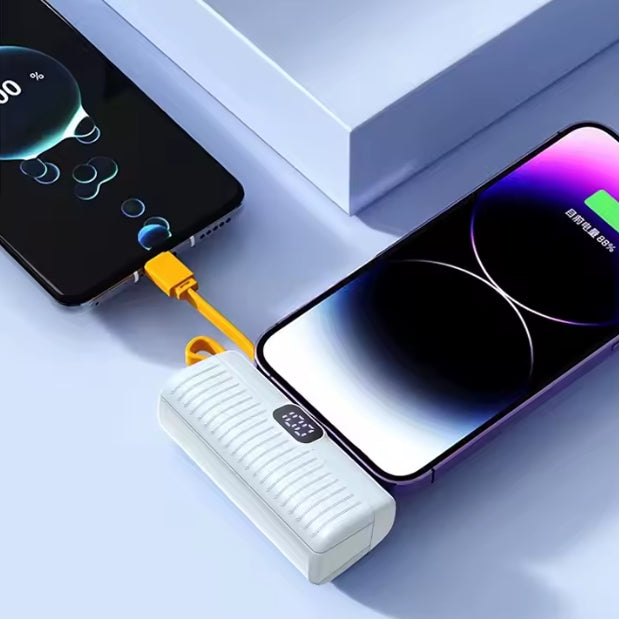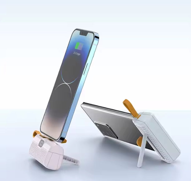 Stay powered on the go with this ultra-slim and stylish power bank — perfect for outdoor use, travel, and everyday carry. With built-in cables and a universal plug, it's ready whenever you need it.