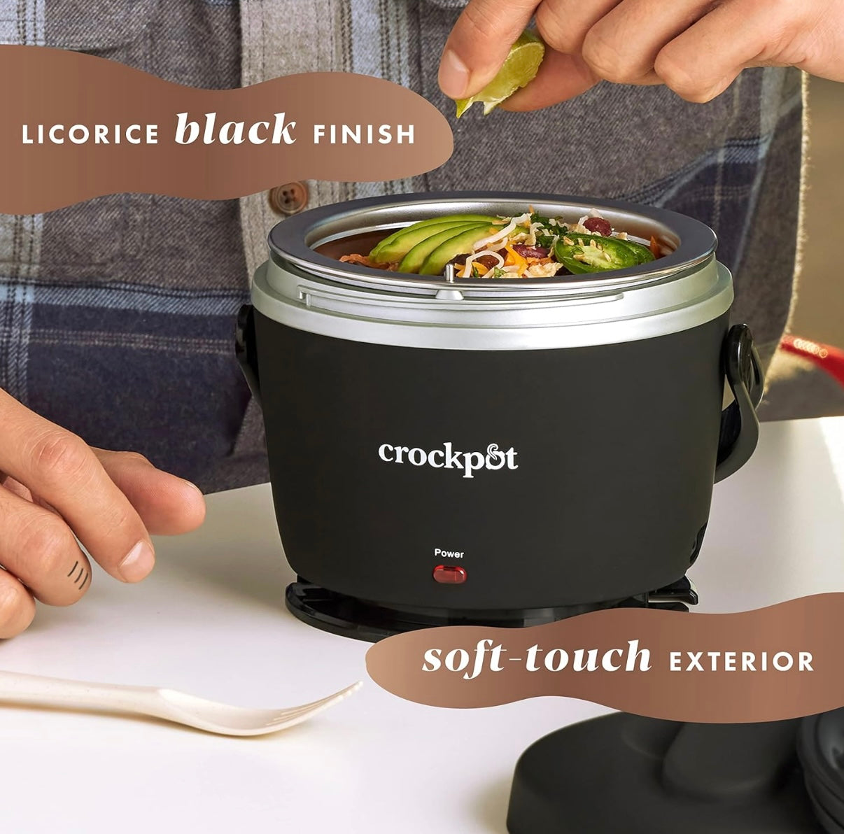 Elevate your lunch routine with the Crock-Pot Electric Lunch Box, a portable, easy-to-carry meal warmer boasting a modern-vintage style in an elegant Black Licorice finish. Perfect for busy lifestyles, this innovative lunch box keeps your favorite soups, leftovers, and meals deliciously warm wherever you are.