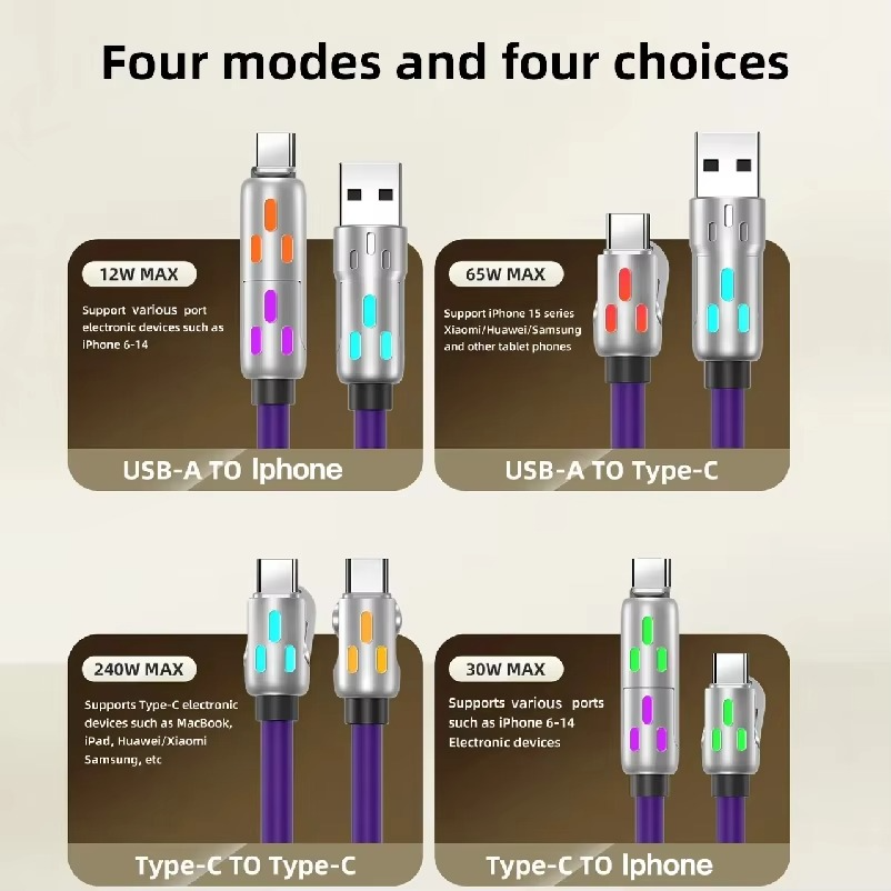 Say goodbye to cable clutter. This 4-in-1 charging cable features USB to iPhone, USB to Type-C, and more—ensuring compatibility with virtually every device you own.