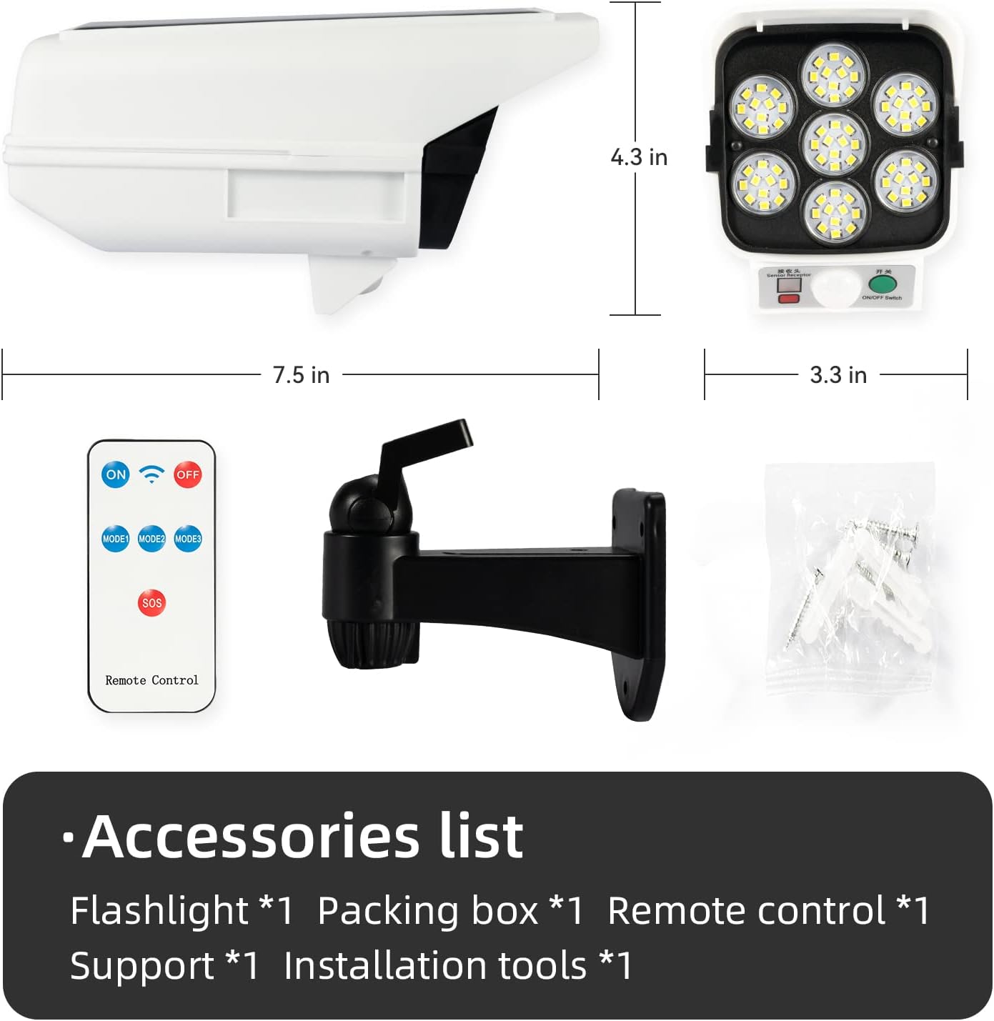 Light up your space with powerful, energy-saving illumination. This solar-powered LED security light is designed to provide bright, reliable lighting for your home, garage, garden, office, or warehouse. With 77 ultra-bright SMD LEDs, motion detection, and remote control, it delivers both safety and convenience.