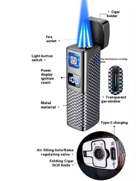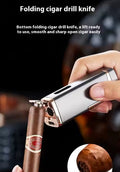 Enjoy the perfect cigar experience anywhere with the Cigar Punch Knife, a premium multi-functional tool that combines a sharp cigar punch, a durable knife, and a USB rechargeable windproof lighter in one sleek, portable design.